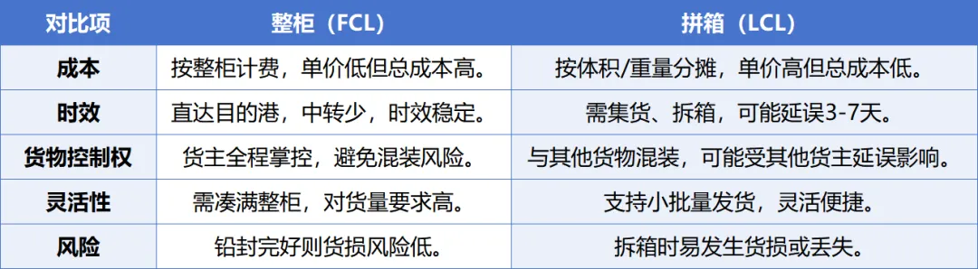 拼箱可能因集货、拆箱增加运输时间,适合非紧急货物。